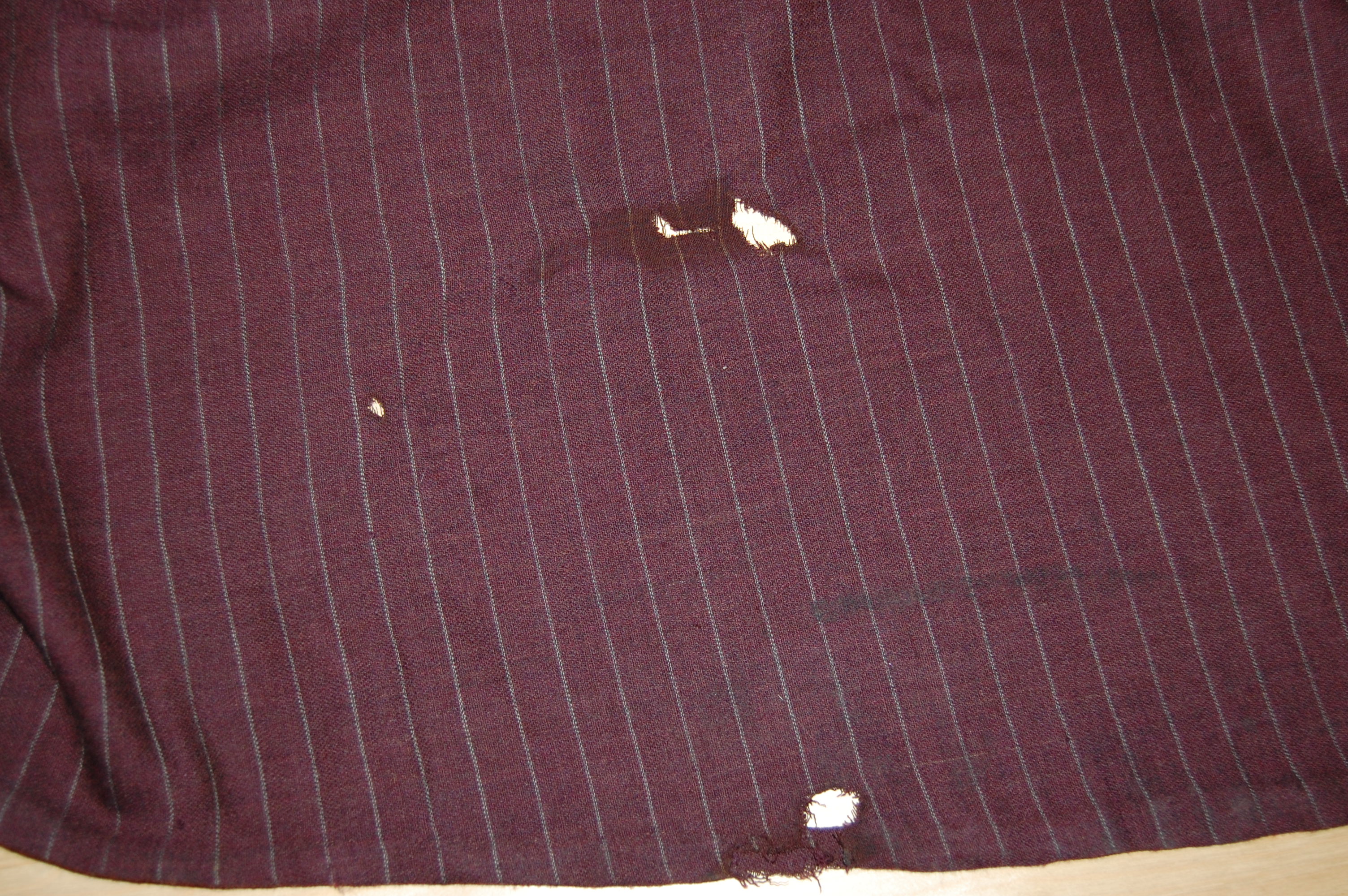 Three holes (at least; there might be four) and mending to do. The patches are cut, but I’m thinking now that a wool apron might be a good thing to have. The other thing I’ve been thinking about is what James Thurber called The War Between Men and Women, and how even in educated, enlightened North America, it plays on. [i]