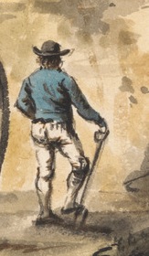 How historically accurate is it? Well…the fit is a trifle off. It’s better than the base pattern, as I altered the shoulders, but it could use another round of alterations and fitting if the intended wearer would tolerate it. Still, like the man to the left, the kid is supposed to be working in this, so he’ll need some room.