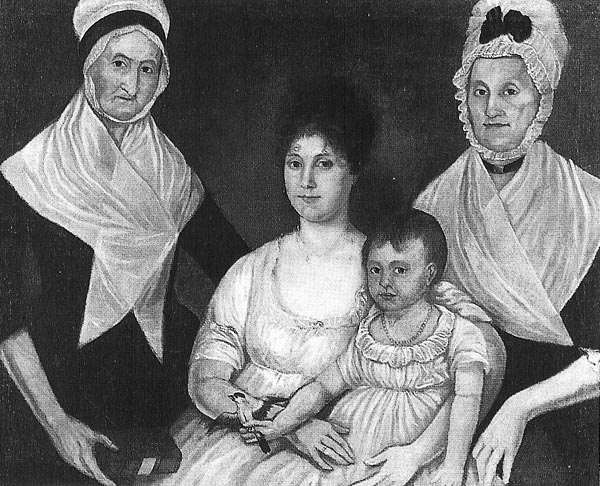 What about choosing fashions for the older set in 1812? That’s where it gets really interesting, to me. Check out the Ege-Galt family portrait, ca. 1802. The older women are NOT in the high-waisted filmy gowns. Left to right, the sitters were born in 1724, 1779, 1801, and 1748. They are wearing more traditional-looking, darker, firmer-stays-underneath, gowns.