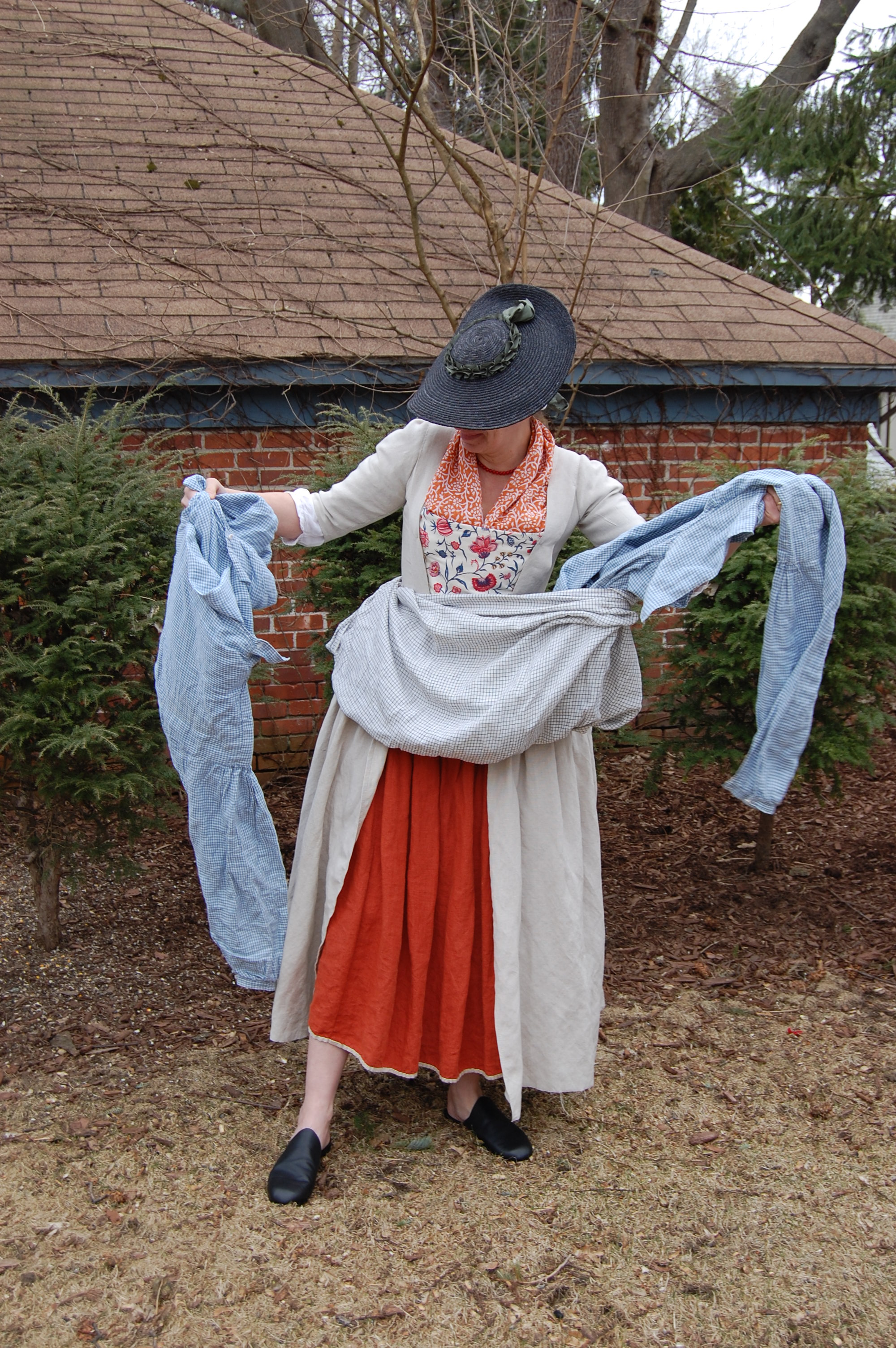 The photos people have of the Millinery Conference at Williamsburg– well, they’re a little envy-inducing. All the silks gowns on such a beautiful site are a little overwhelming if you like historic costumes, but if I was all about silk gowns it might be harder to do what I am doing.