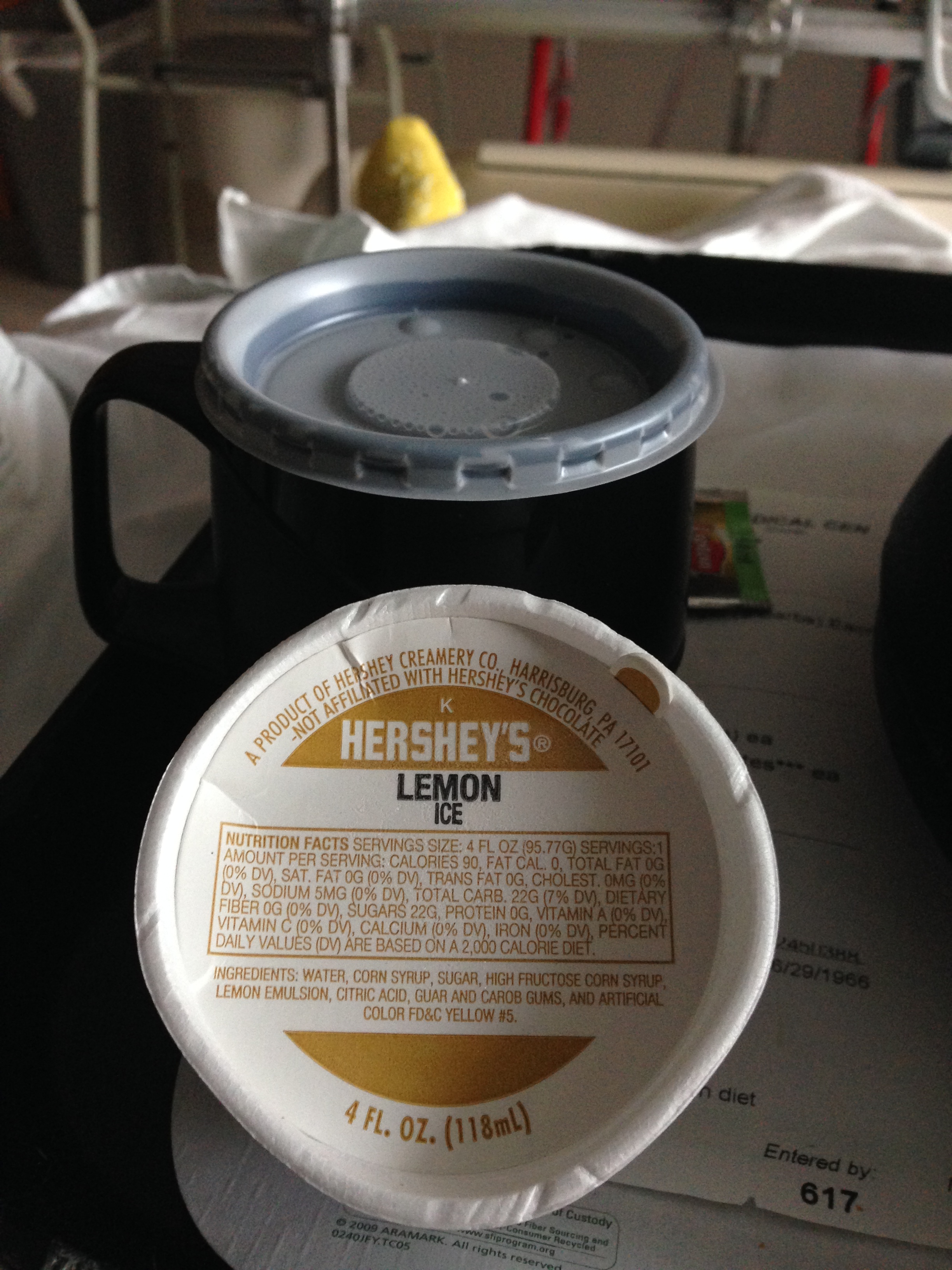 The other big focus is meals. In the hospital, you call and order your meal, and it is the only place I know where you can order Lemon Ice for breakfast with fruit and coffee, and where the kitchen will call and wake you up to make sure you place a dinner request before it’s too late.