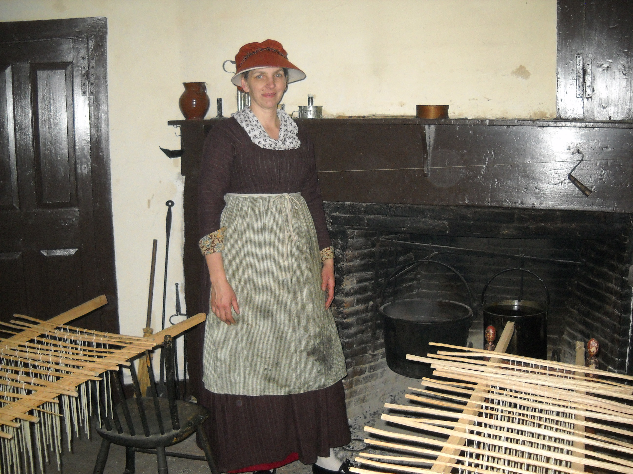 For first person, we find that a staff member providing an orientation helps immensely. We also have a staff person on each floor of the house, so that the 21st century person can provide 21st century answers. I went to Plimoth again recently and was freaked out by walking in on people in their homes– I’ll never be a burglar– and thought hard about what would have made that experience better for me. Native guides, in the form of docents or staff remaining in this present moment help a lot. “Yes, that’s a real fire. No, they didn’t sleep here. Now, they are working on new clothes for the winter season– you can ask the tailor what he’s brought in, and what new goods have arrived.”
