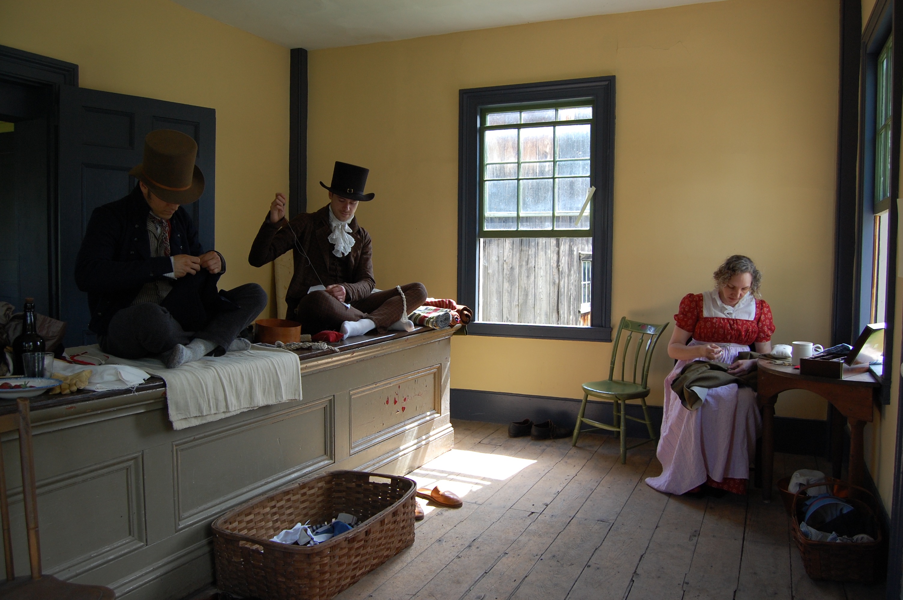 The “aren’t you hot” question is often followed by, “Wow, and they didn’t bathe, so everyone really smelled.” You try not to think of that Monty Python sketch about Britain’s deadliest joke program in WWII and move the conversation on to weekly laundering of body linen, multiple shifts, shirts, and under-drawers, and the general hygienic practices of the past.