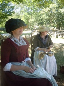 Making this up raises more questions: how individually fitted were bonnets to wearers? Did caul and brim size vary depending on wearer? What’s the class line below which a woman doesn’t have a bonnet, but only a hat? How quickly did styles change? The sort-of-conical black bonnet is seen on “older” women in paintings well past the height of the style. But as I’ve asked before, what do we really understand about the portrayal of age in art? Are we really reading the symbols correctly? How well do we grasp the semiotics of the 18th century? All of those questions are present when we try to replicate the past using only visual sources. Yes, there is an extant 18th century black silk bonnet at Colonial Williamsburg, and we can use that in conjunction with images to make the things we wear. But pondering all of these questions makes me think it’s time for another troll through collections in Great Britain, just in case new cataloging has put old bonnets online.