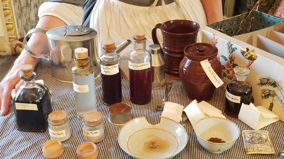 Not that scent wasn’t an excellent way to engage people! I couldn’t let visitors taste the remedies, but they could smell them, offering the opportunity to play “What’s that smell?” (non-feline edition) and talk about how people use the flavors they’re accustomed to in their medications and treatments. My cats never cared for bubble-gum flavored amoxicillin, but it’s bigger hit with toddlers than the straight-up medicine flavor would be. So, too, with tooth powders past: cinnamon, mace, and nutmeg are the blue raspberry of the yesteryear– though the tooth powders smell much better than they taste. I cannot recommend a weekend of use unless you wish to feel sad each time you clean your teeth.