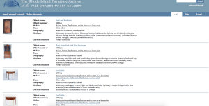 Yale’s Rhode Island Furniture Archive is a good example of how a massive amount of data can be used. Take this record of side chair possibly made by John Carlile and Sons, and scroll down. That’s a lot of associated chairs. And they all look very similar. Examining the materials, especially secondary woods, of a labeled chair and comparing the style, make, and materials with other very similar chairs can help identify chairs, associate them with a maker, and provide a sense of Carlile’s production volume.