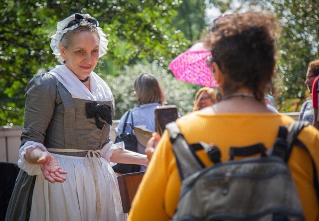 I’d call it “three times a lady,” but truly, I’ve only been a lady in Occupied Philadelphia twice. Last year and this year, I portrayed Elizabeth Weed, a widowed pharmacist living on Front Street in 1777 with her son, George. We don’t know why Elizabeth Weed didn’t leave the city along with nearly half the population. Was she a loyalist? Was her son too ill to travel? Or did she choose to stay to protect her property from the British– or the son of her late husband’s first marriage, who withheld a portion of the estate? Whatever the reason, remain she did, advertising her wares in the October 23 edition of the Pennsylvania Evening Post.