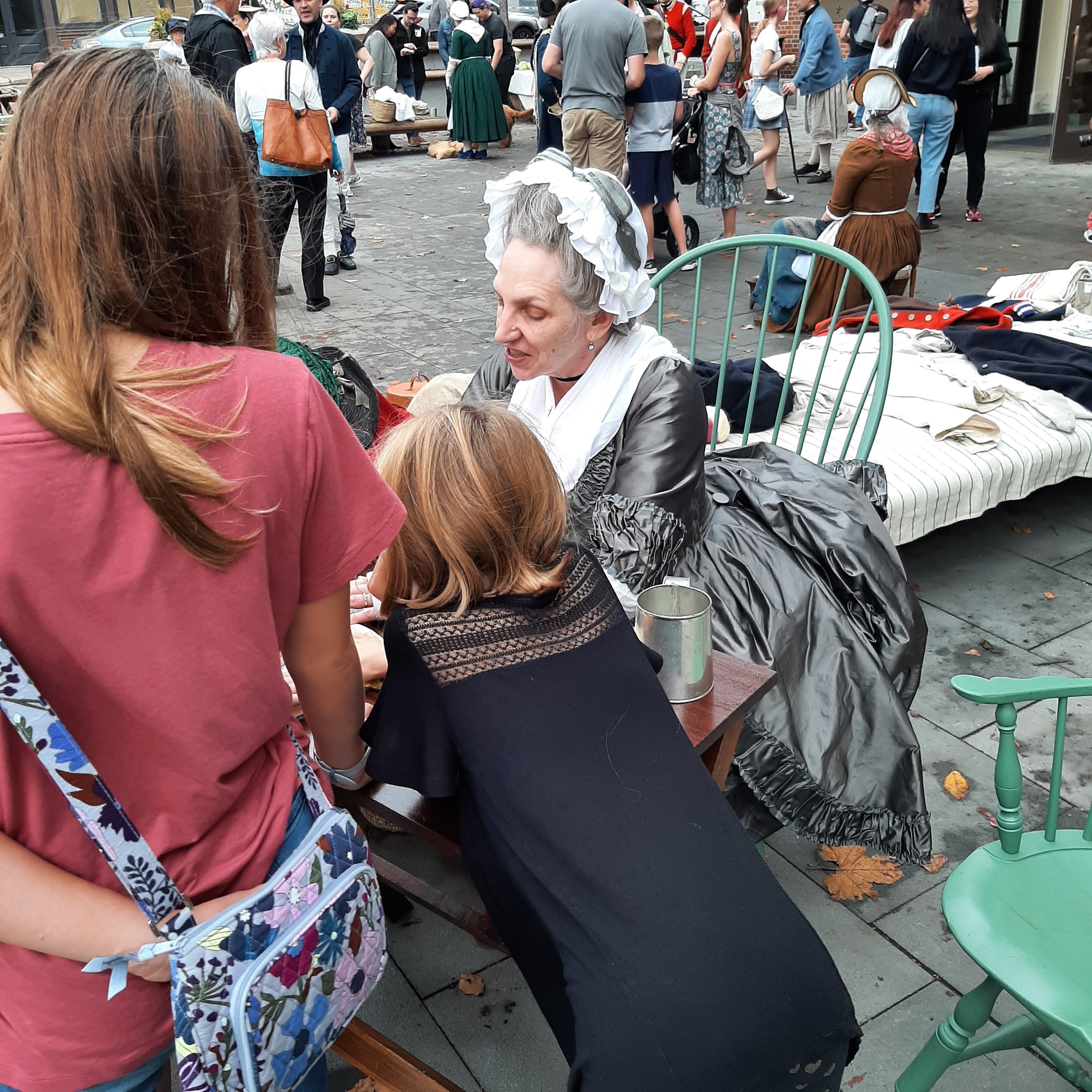 This past weekend (November 1-2) at the Museum of the American Revolution’s Revolutionary City (Pre-Occupied) event, I was pleased to represent Magdalen Devine, a feme sole trader in Philadelphia who ran a mercantile business between 1762 and 1775. Devine’s situation in 1775 reflects the tensions and uncertainties felt by many at the start of the American Revolution, and continues to resonate today.