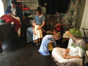 Making this up raises more questions: how individually fitted were bonnets to wearers? Did caul and brim size vary depending on wearer? What’s the class line below which a woman doesn’t have a bonnet, but only a hat? How quickly did styles change? The sort-of-conical black bonnet is seen on “older” women in paintings well past the height of the style. But as I’ve asked before, what do we really understand about the portrayal of age in art? Are we really reading the symbols correctly? How well do we grasp the semiotics of the 18th century? All of those questions are present when we try to replicate the past using only visual sources. Yes, there is an extant 18th century black silk bonnet at Colonial Williamsburg, and we can use that in conjunction with images to make the things we wear. But pondering all of these questions makes me think it’s time for another troll through collections in Great Britain, just in case new cataloging has put old bonnets online.
