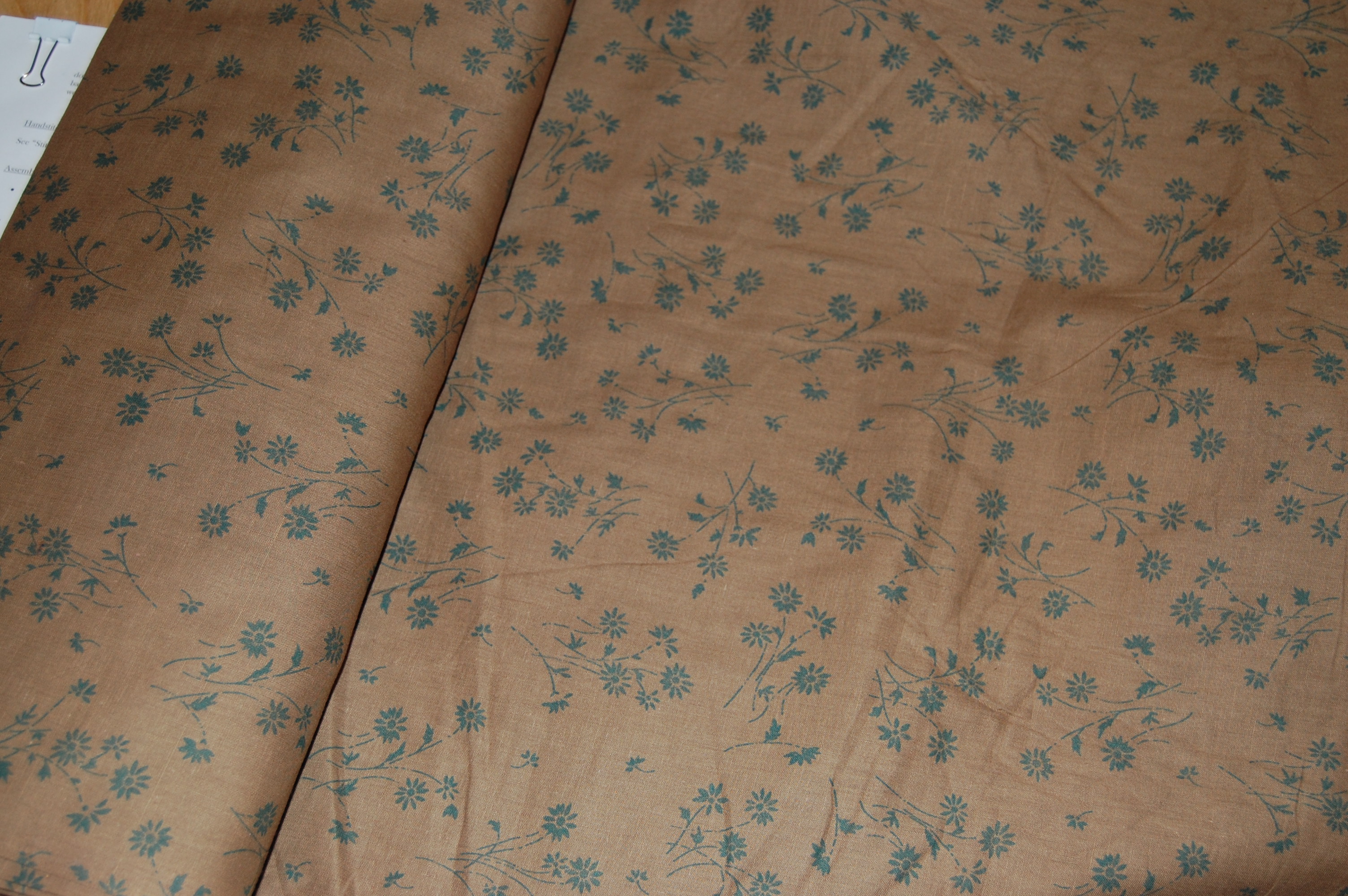 But I can find dark ground cottons, and while what I have is not documented reproduction, I am comfortable with it. The lining will be off-white plain weave wool because it’s winter. I don’t have documentation for this combination but among the fabrics on hand in my reduced-but-accessible Strategic Fabric Reserve, the wool has the best hand and the correct yardage, so wool it is. (It feels like brushed cotton, and was meant for a shift but needs must.)