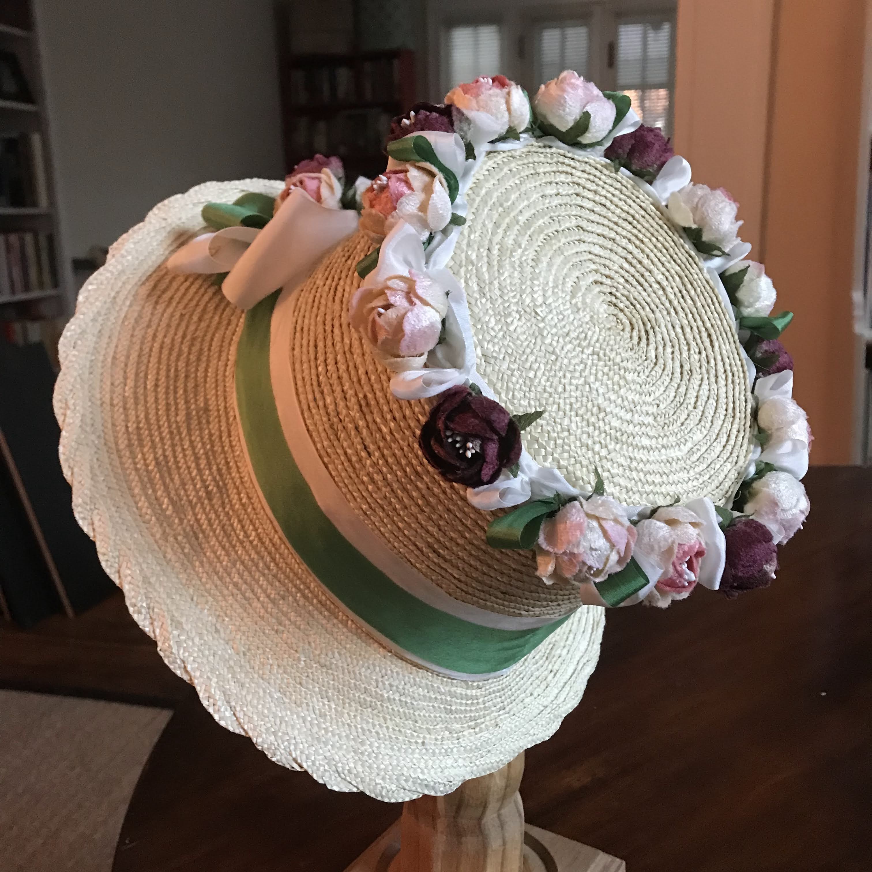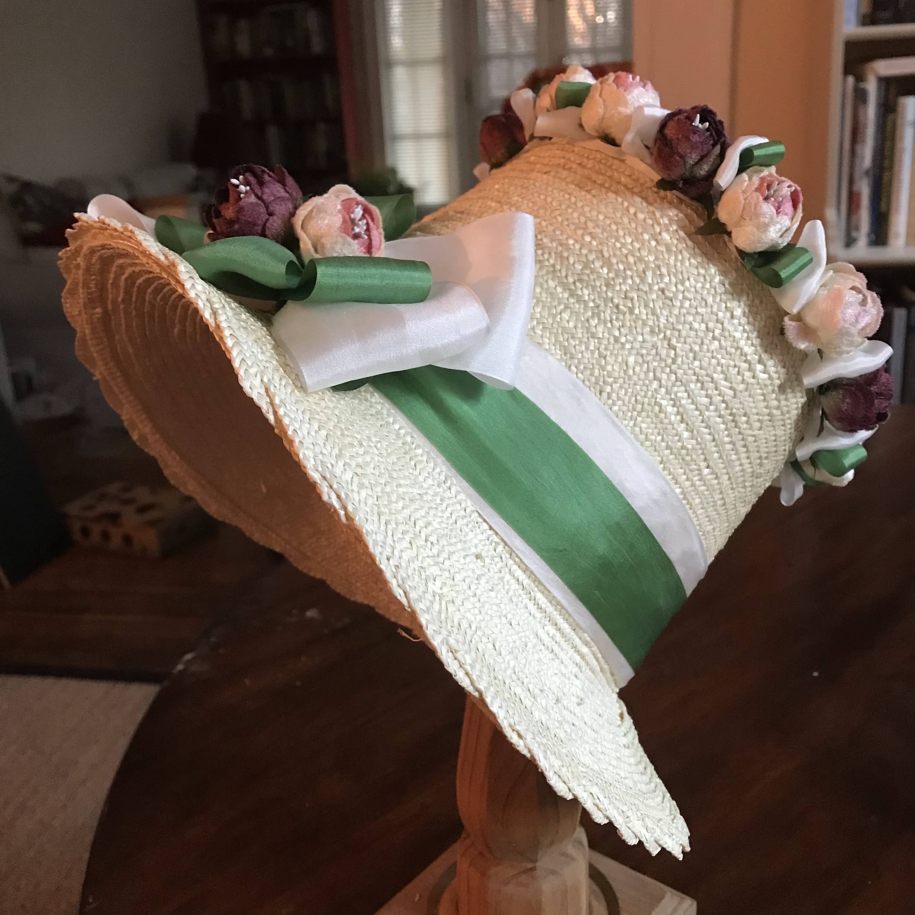 - 4 bonnets, including one in black velvet and one white