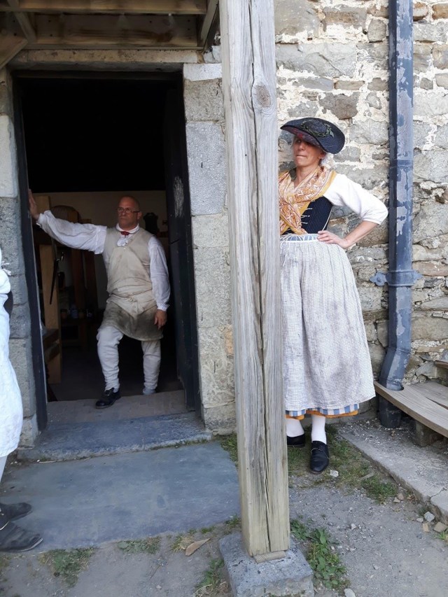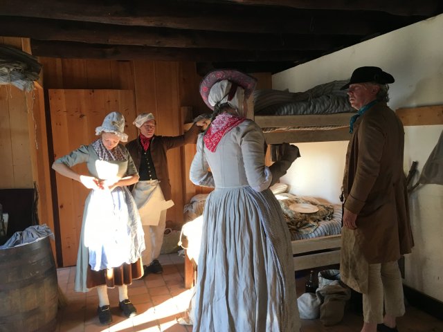 No matter what one ultimately decides the research shows about the number of servants and their roles in an American occupied fort, I know I spent the day more immersed than I have been in a long time. Fort Ticonderoga provided a picturesque backdrop, and my body provided a four-dimensional pain experience reminding me of the tribulations of women in the <cough> period </cough>. I spent the majority the day (the part I was awake, anyway) experiencing the full joys of being female and still fertile. The more I read about archaeology of the 18th century, particularly in the privies and trash pits, the more I think nearly everyone in the past felt pretty awful most of the time. If that hunch is correct, I nailed Saturday despite appearing in undress (which I can at least document to Sandby at Sandpit Gate).