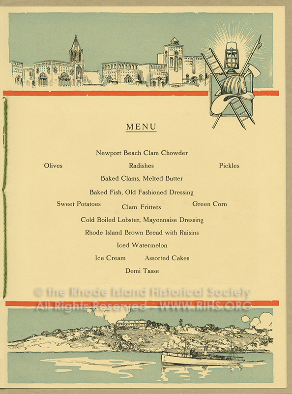 This 1916 Clambake program and menu is in the RIHS Graphic’s Ephemera Collection, and while not quite Wiener Werkstatte quality, the dramatic graphic style captures the zeitgeist of the early twentieth century.