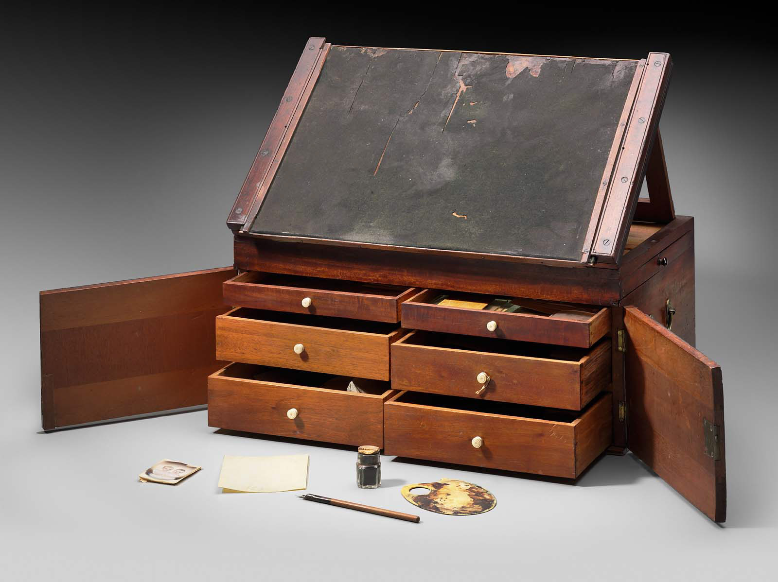 There are dolls, always divisive (they’re creepy or cute, few folks fall in between) and they have they own usefulness. None in this Pook sale tell us much about early toys, but there are a couple of early 19th century examples to remind us of what children played with in the past, and how new fashions were disseminated. In the case of the milliner’s model doll at left, we get a good sense of the Apollo’s knot hairstyle, and a pair of red slippers I would love to have. The back view is equally useful, for it is only with three-dimensional objects (dolls or sculpture) that we can get a complete sense of a hairstyle or costume. With enough looking, you can extrapolate, but there’s nothing like being able to see the past in the round. That’s even better than the telephone-book-thick catalogs from Sears and J.C. Penney that arrived before the holidays in decades past.