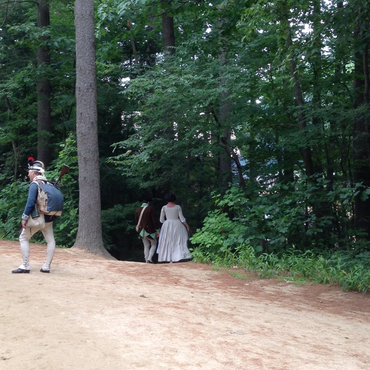 As you can see in this Sandby-like image, we went, briefly, to Sturbridge for Redcoats & Rebels, so that Mr S could wear the Andes Candies Coat and the Ugly Dog Coat in the Military Fashion Show and so that I could see Sew 18th Century again. (Thanks to her for the photo!). We didn’t realize how tired we were until we sat down.