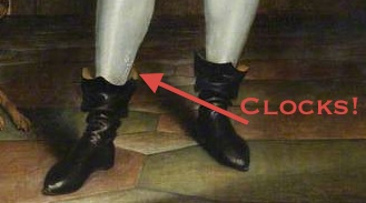 What I am interested in is what the painting shows us. Like The Drowsy Dame, there’s fun the details quite aside from the those slouchy boots. Inside those boots are silk stockings with clocks, a lovely detail that that shows you what class level should be wearing clocked silk stockings in perfect repair in the British Army. Anyone else not of the class that could afford a commission might want to think about having second-hand silk stockings…and, since we’re at the floor level, nice dog. I think he wants walkies, Captain.