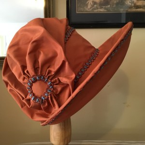 A friend regularly sends me bonnet descriptions from the inventories she’s researching; one description was of a white silk bonnet with a red cherry silk lining from Rowan County, N.C. in the 1770s. Hot stuff, right? Less hot if you made it in white linen, but even North Carolina has winter sometimes. I made two, of course, in sightly different shapes.