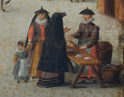 There’s no reliable way to know when the gowns were made, or what exact style they are. We cannot know the state of all 45 aprons, the styles of all 33 caps, or 4 bonnets. There’s hope in the five gowns “unmade up.” There’s frivolity and impulse purchasing in 58 handkerchiefs. Fifty-eight! 26 pairs of stockings, one pair of green silk, and one pair of thread with clocks, but the majority seem to be worsted.