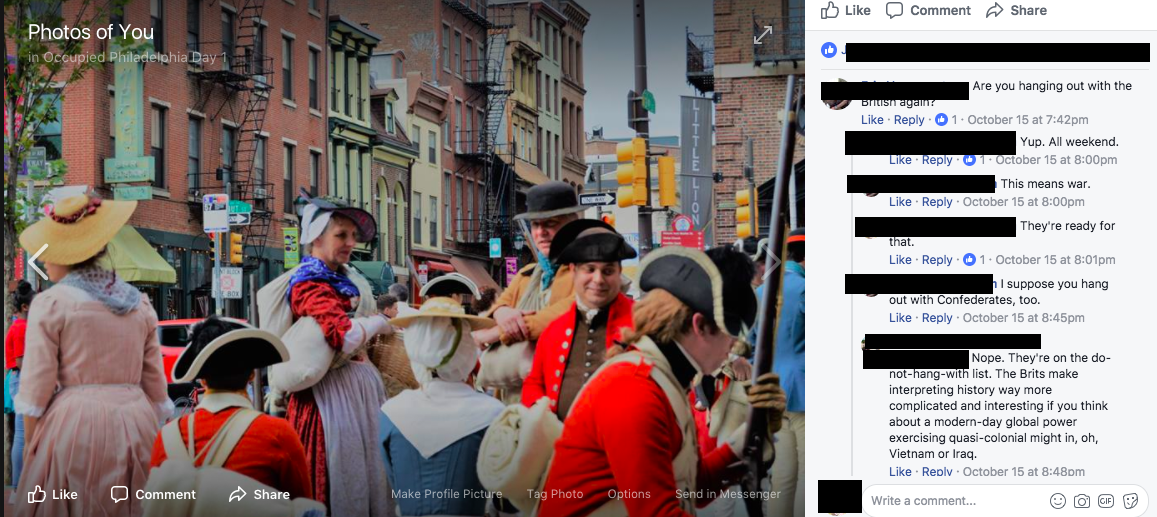 This past weekend (November 1-2) at the Museum of the American Revolution’s Revolutionary City (Pre-Occupied) event, I was pleased to represent Magdalen Devine, a feme sole trader in Philadelphia who ran a mercantile business between 1762 and 1775. Devine’s situation in 1775 reflects the tensions and uncertainties felt by many at the start of the American Revolution, and continues to resonate today.